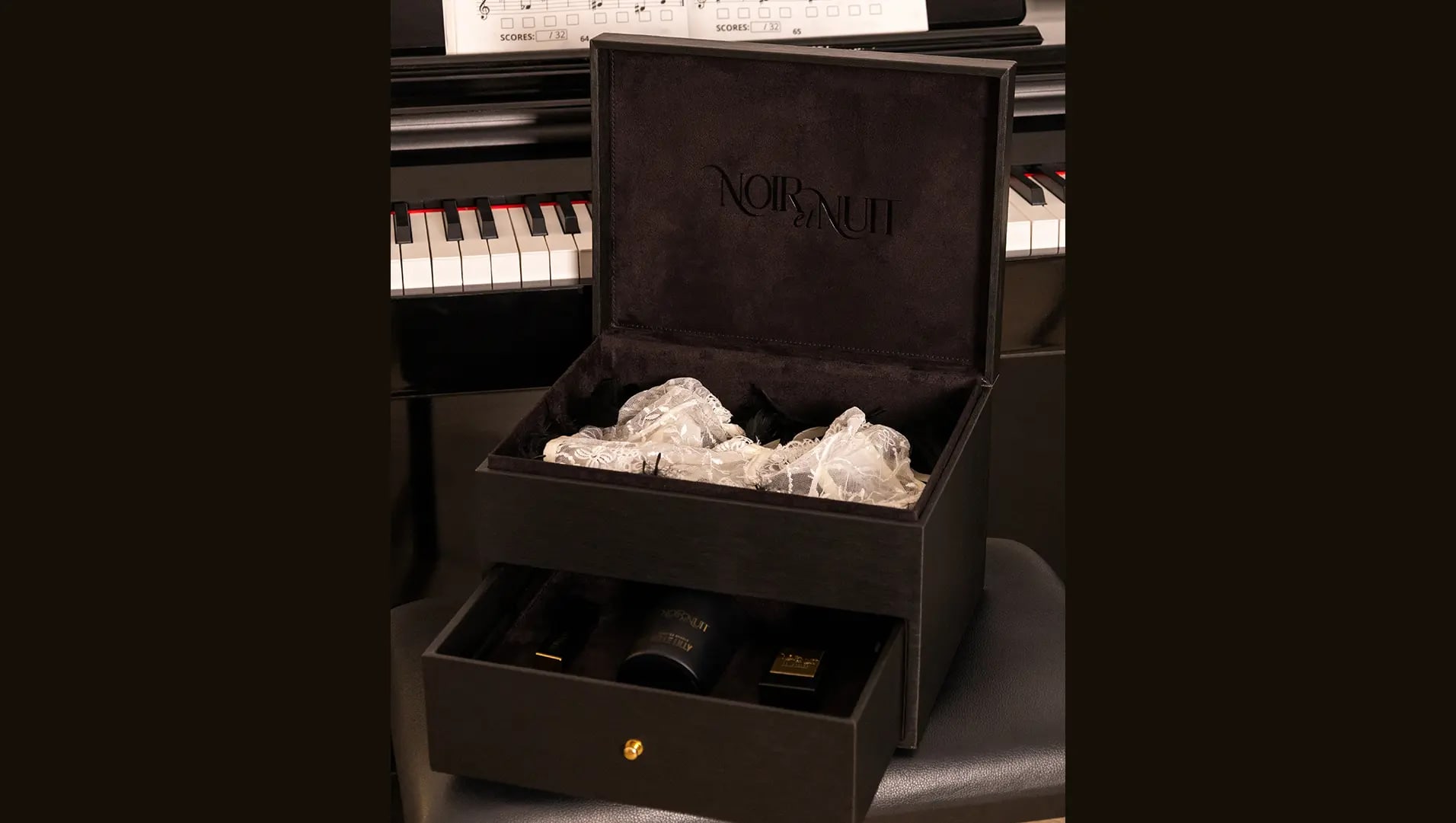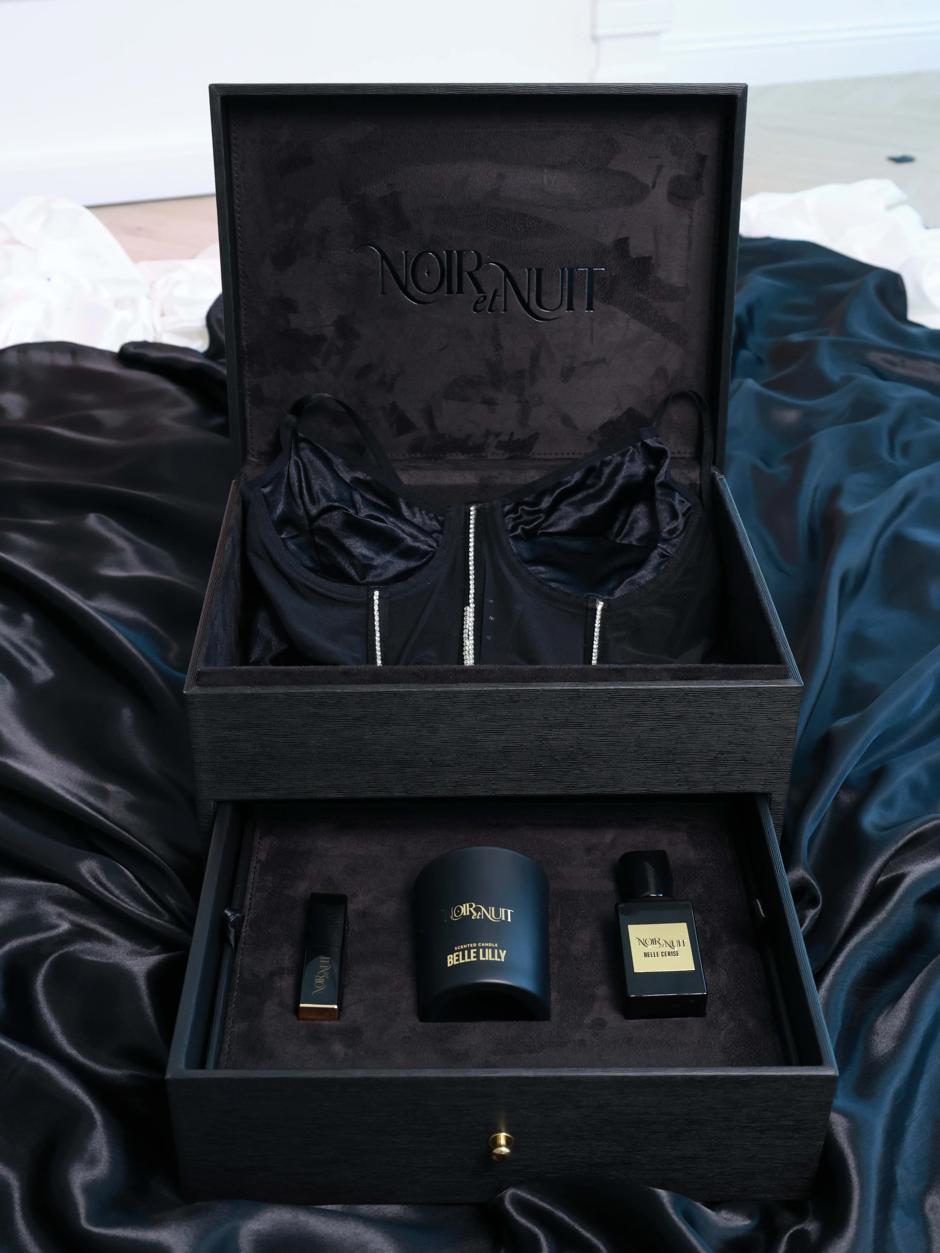 Every item inside Noir et Nuit is selected to create a complete sensory ritual — from the whisper of silk to the scent of rare florals. Nothing is incidental. Everything is deliberate.